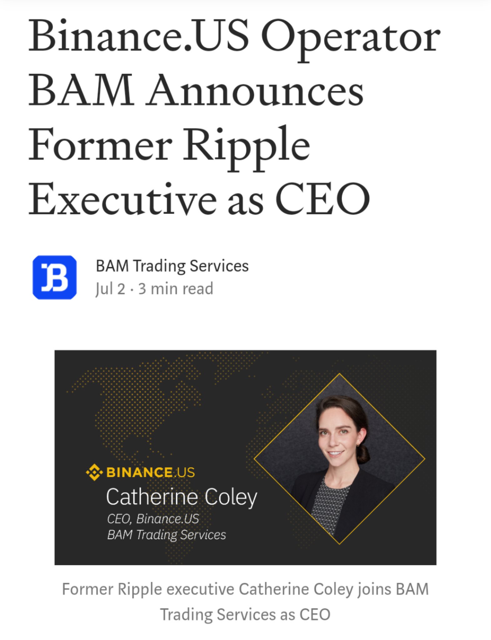 Binance Us Operator Bam Announces Former Ripple Executive As Ceo