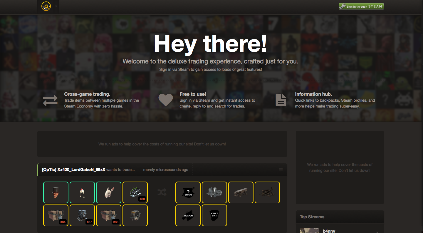 Best tf2 trading sites. This lets you price check tf2 items easily. Scrap tf is the biggest tf2 trading bot site around that let s you trade a wide range of items hats cosmetics strange weapons items keys metal regular weapons unusuals and even steam game gifts some csgo items. Get 2 bonus for having mannco trade in your steam name.