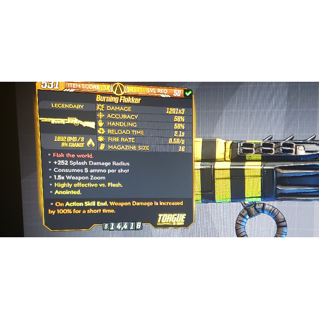 Lvl 50 Anointed Burning Flakker Borderlands 3 Xbox One
