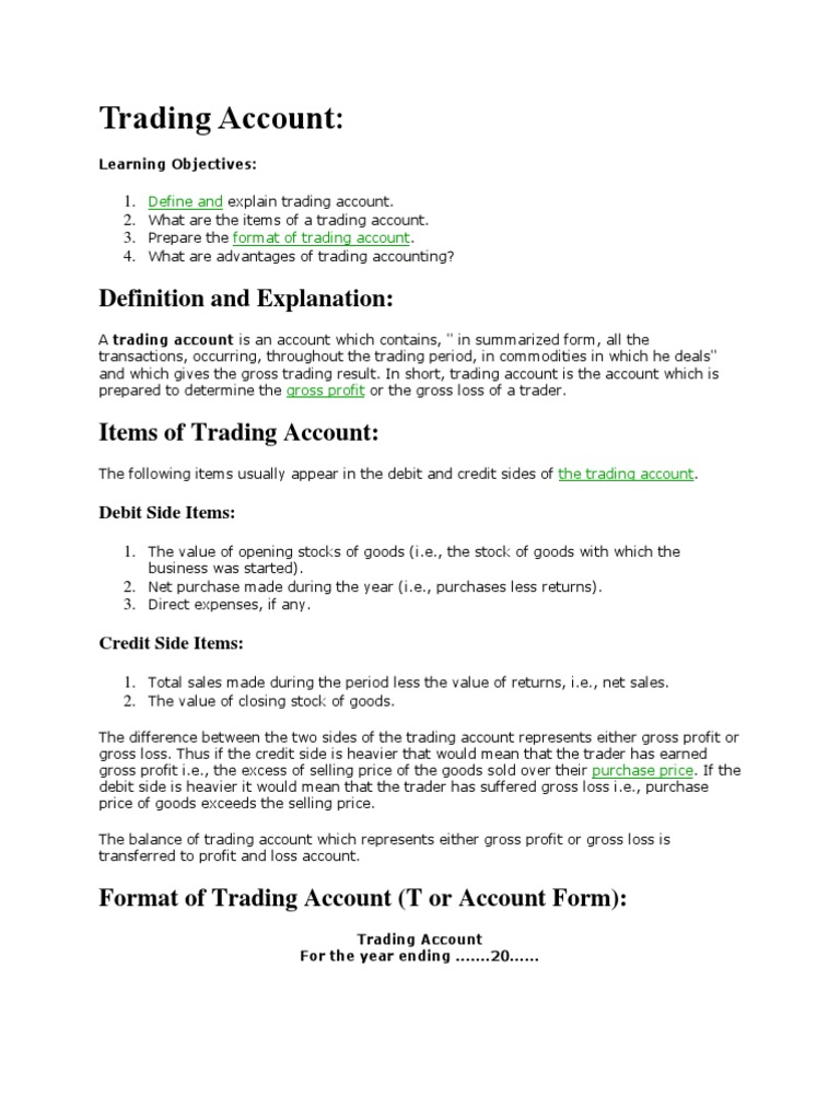 Definition Of Trading Account
