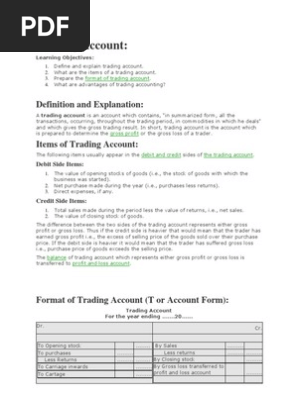 Trading Account Format Examples And Advantages