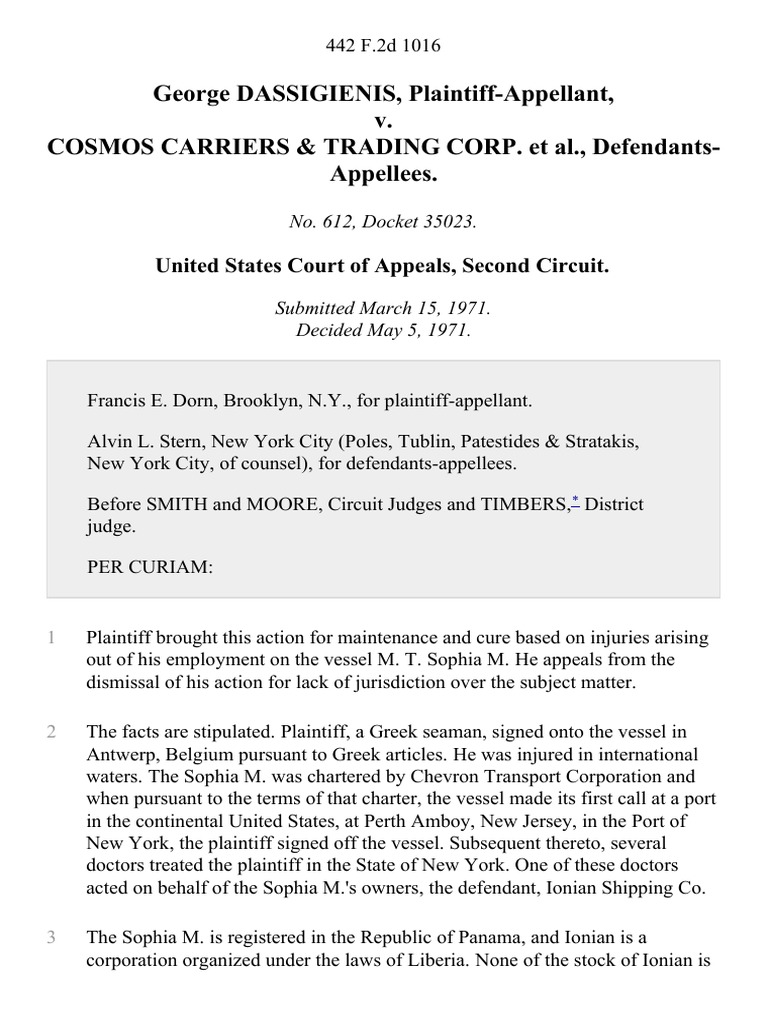 George Dassigienis V Cosmos Carriers Trading Corp 442 F 2d