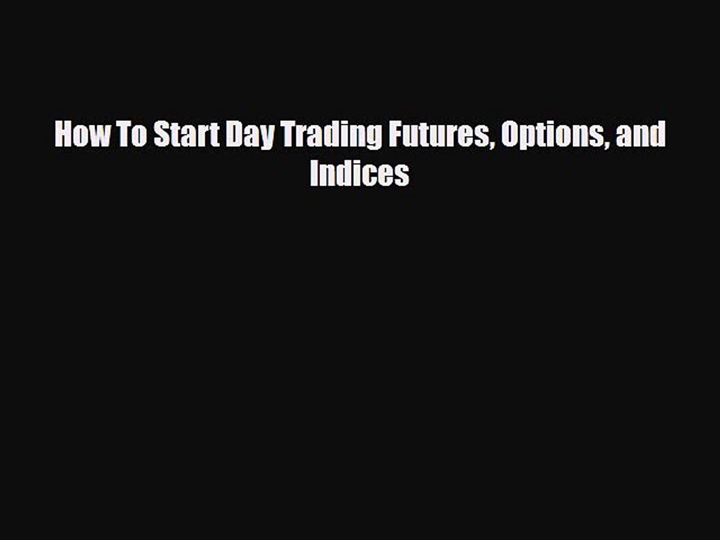 Pdf How To Start Day Trading Futures Options And Indices Read