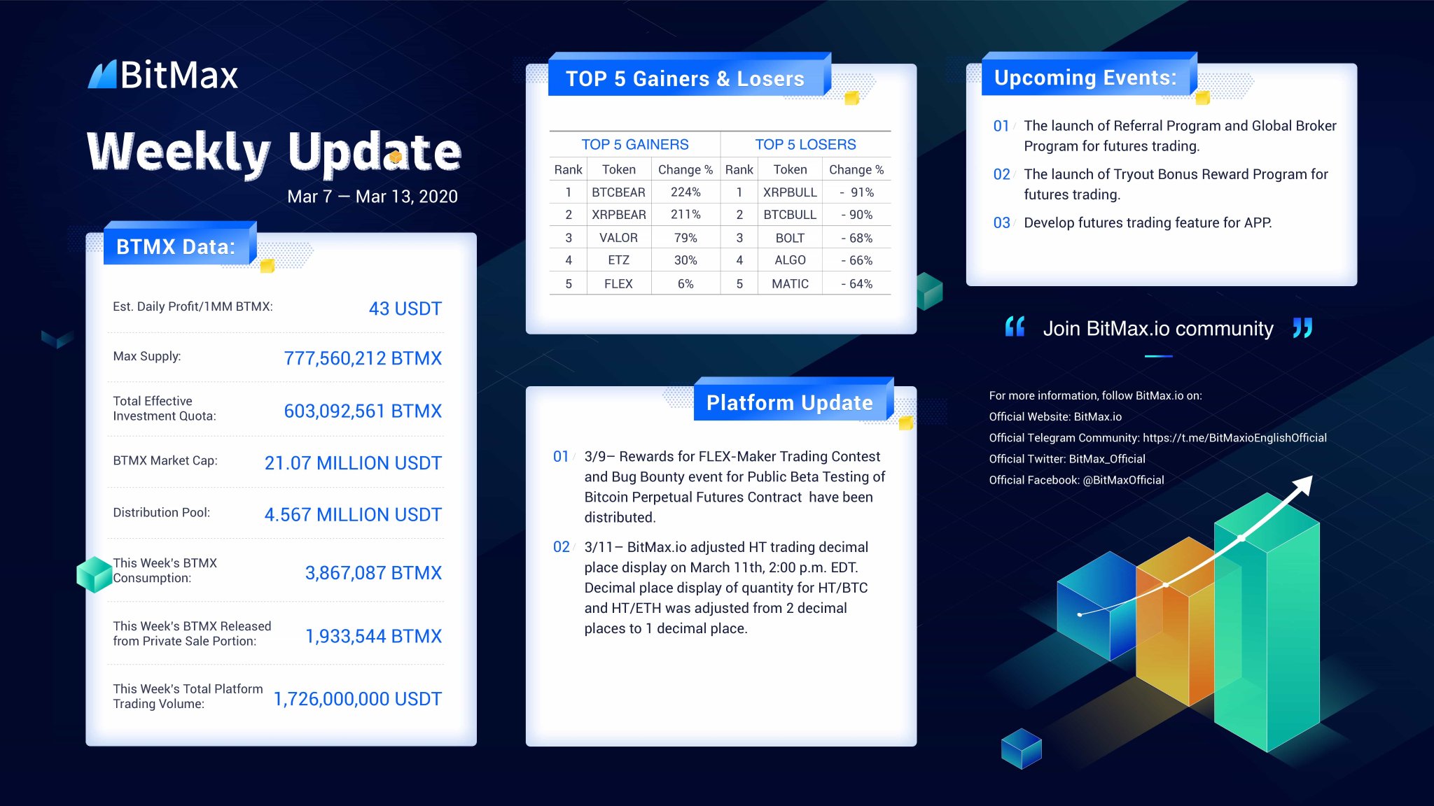 Bitmax Official On Twitter Https T Co Zgbxdxr6kg Weekly Update Mar 7th Mar 13th 2020 This Week We Distributed Rewards For Flex Maker Trading Contest And Bug Bounty Event For Public Beta Testing Of Bitcoin Perpetual