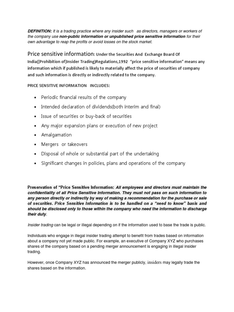 Insider Trading Insider Trading Information Sensitivity