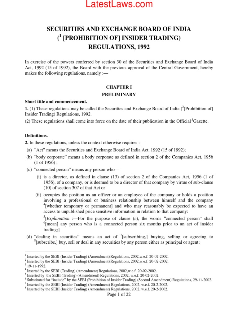 Sebi Prohibition Of Insider Trading Regulations 1992 Insider