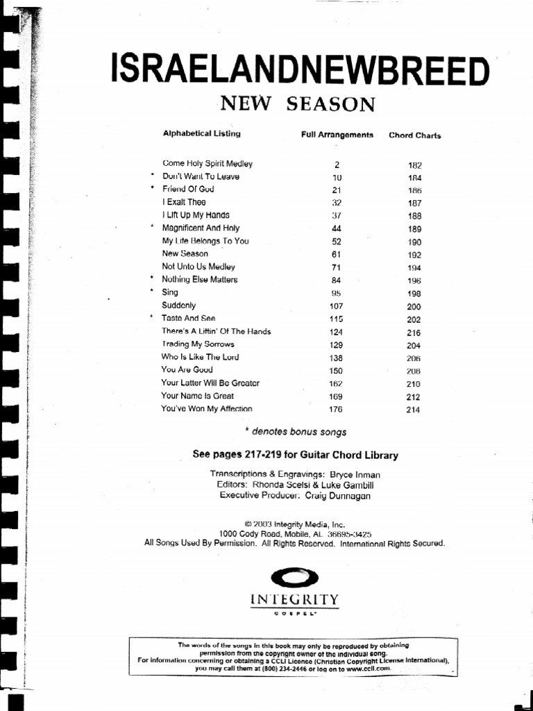Partituras De Israel And New Breed New Season