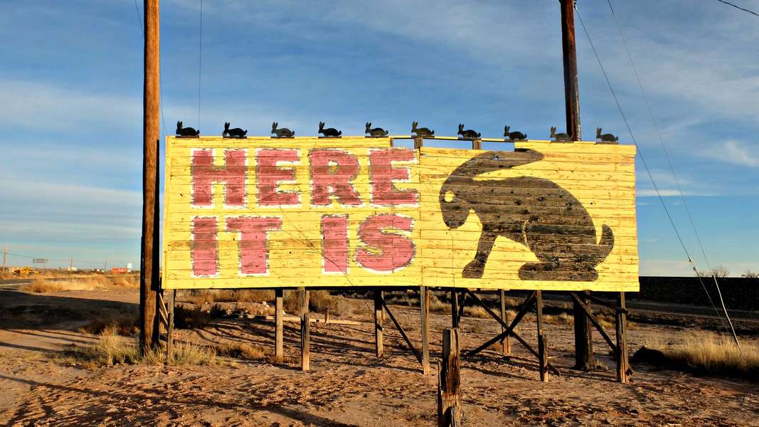 Billboard Marking The Location Of The Jackrabbit Trading Post On