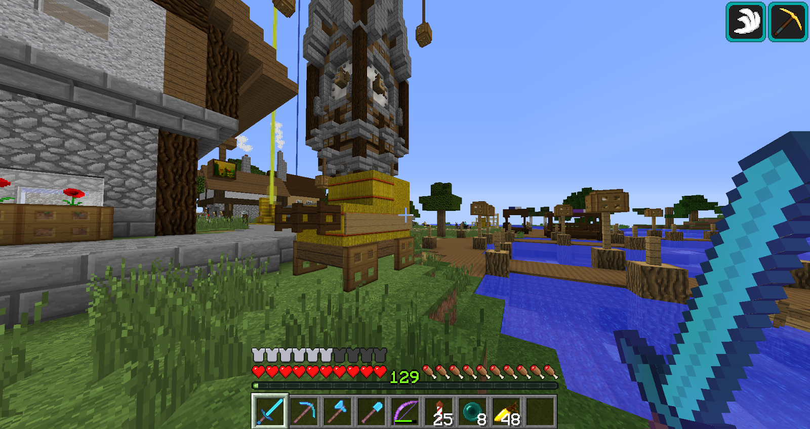My Advanced Minecraft Adventure Day 21 Clock Tower Leap Of Hay Bakery Trading Booth