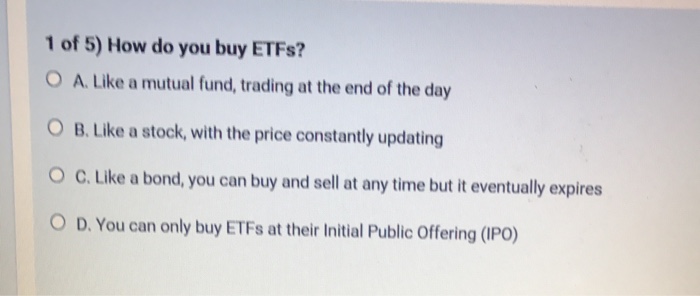 Solved 1 Of 5 How Do You Buy Etfs A Like A Mutual Fund