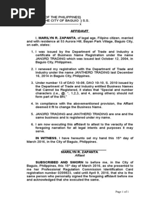 27 Affidavit Of Change Of Business Name Docx Affidavit Civil