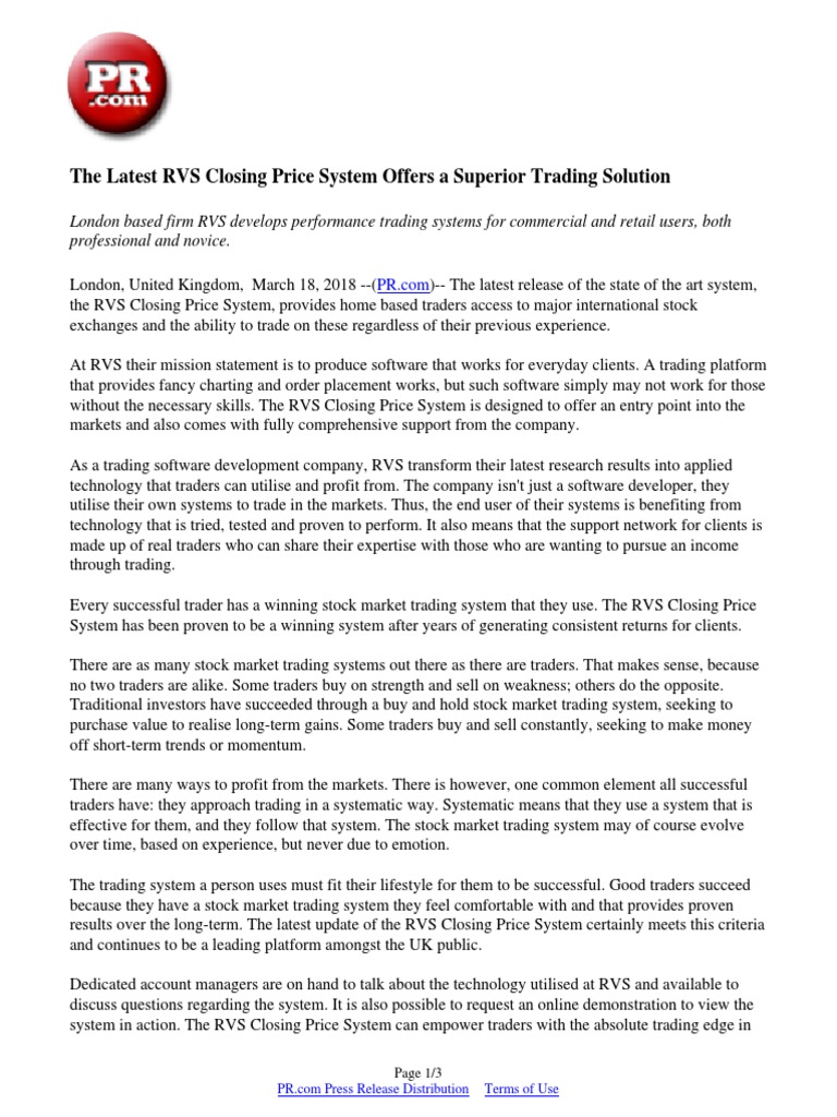 The Latest Rvs Closing Price System Offers A Superior Trading