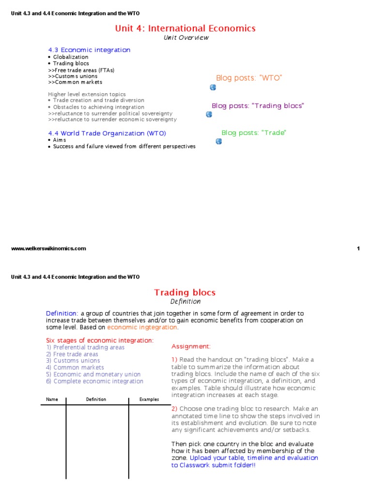 Unit 4 3 And 4 4 Economic Integration And The Wto Economic