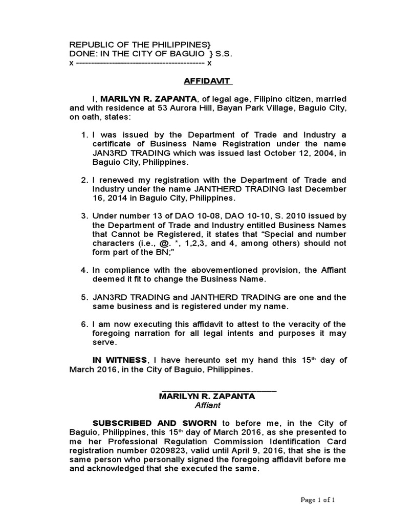 27 Affidavit Of Change Of Business Name Docx Affidavit Civil