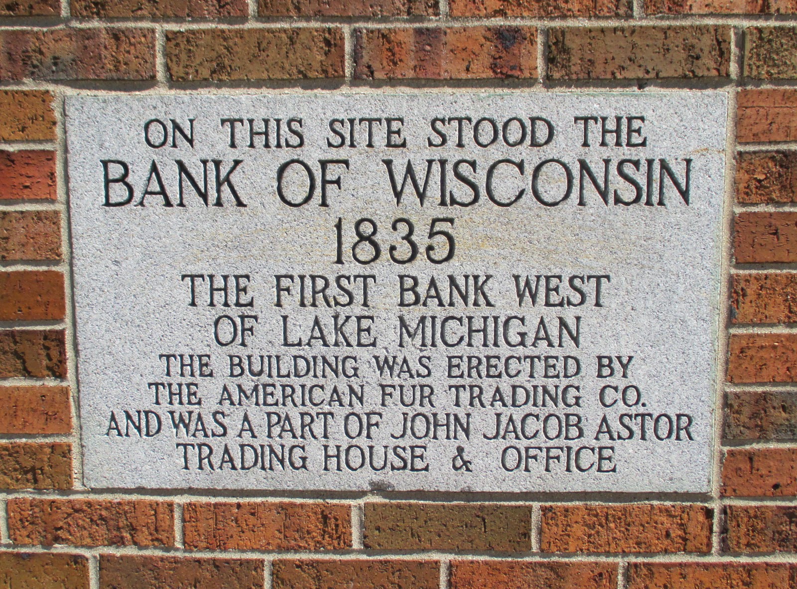 Wisconsin Historical Markers Wrl 38 First Bank West Of Lake Michigan