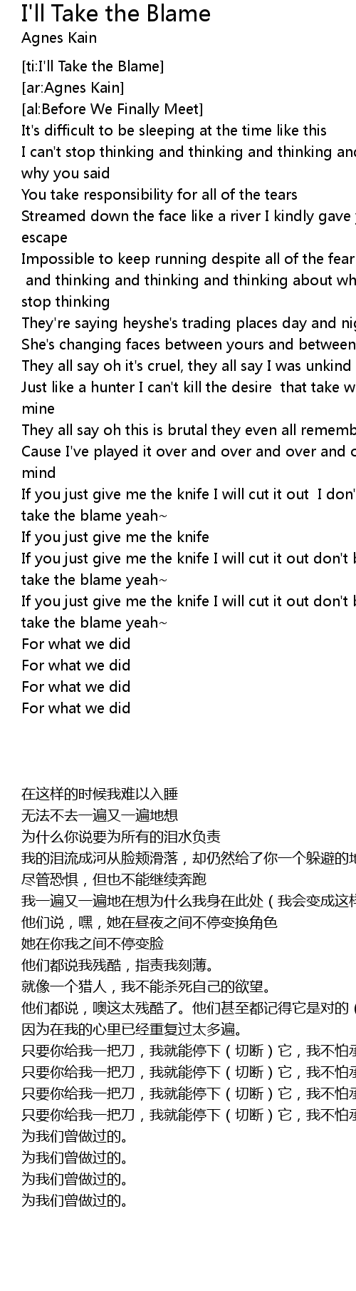I Ll Take The Blame Lyrics Follow Lyrics