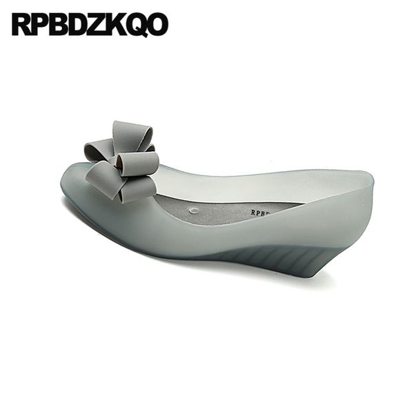 Fashion Wedge Pumps Round Toe Bow 2019 Purple Medium Heels Casual
