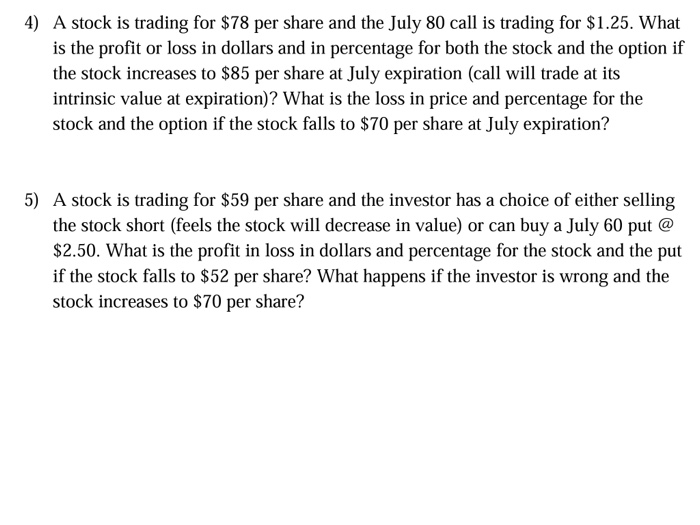 Solved 4 A Stock Is Trading For 78 Per Share And The Ju