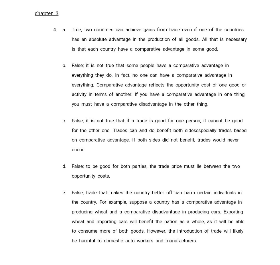 Solved A True Two Countries Can Achieve Gains From Trad